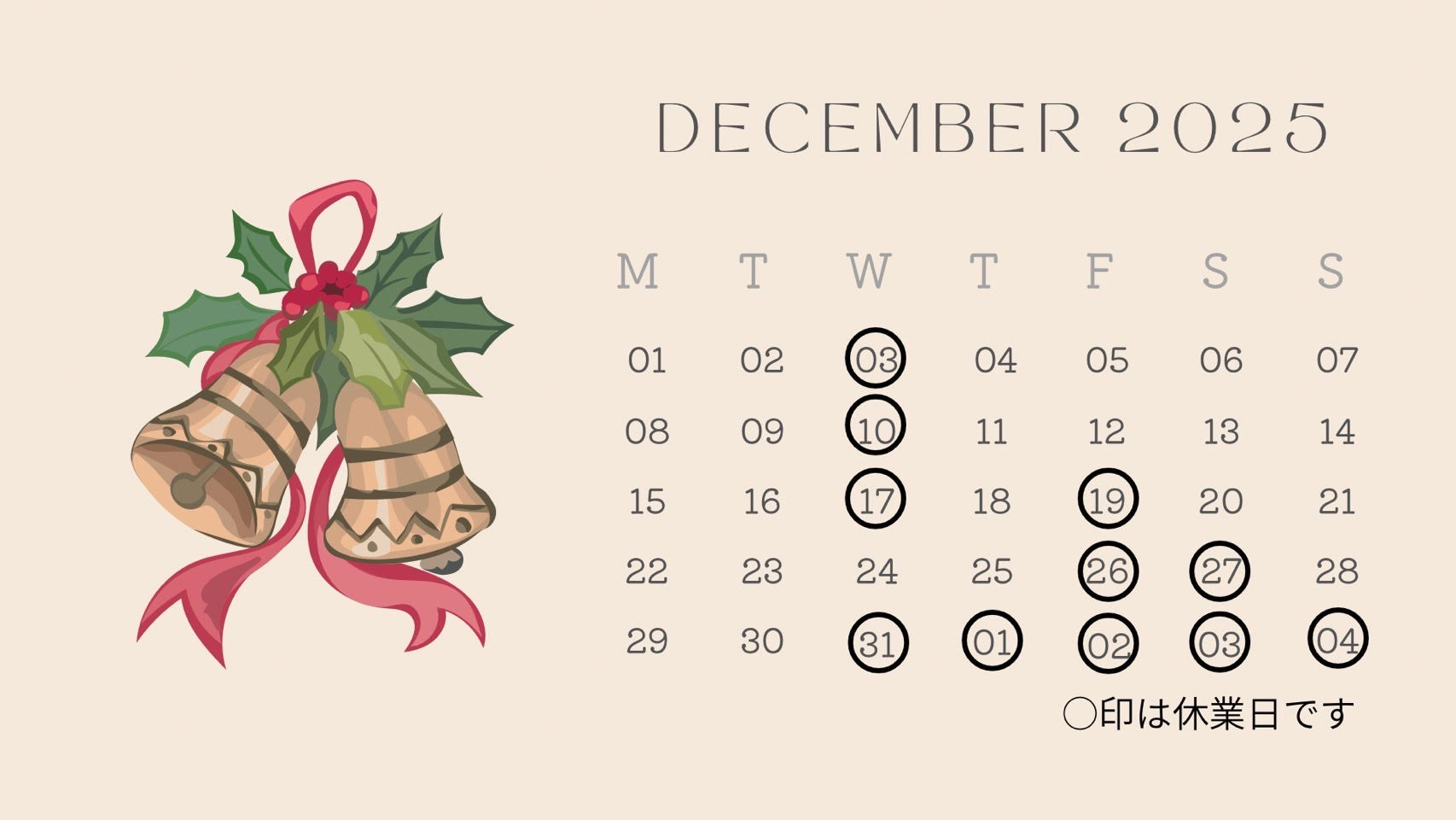 NEWS お知らせ 2025/12/01 NEWS 12月の休業日のお知らせ 2025/04/24 NEWS GW期間と5月の休業日のお知らせ 2025/02/01 NEWS 2月の休業日のお知らせ 2025/01/01 NEWS 2025年1月の休業日のお知らせ 2024/11/01 NEWS 11月の休業日とイベント出店のお知らせ 2024/10/25 NEWS 新メニュー『よもぎ蒸し』はじめました♪ 2024/10/09 NEWS プレミアム付商品券取扱店です! 2024/10/01 NEWS 10月の休業日のお知らせ 12next
